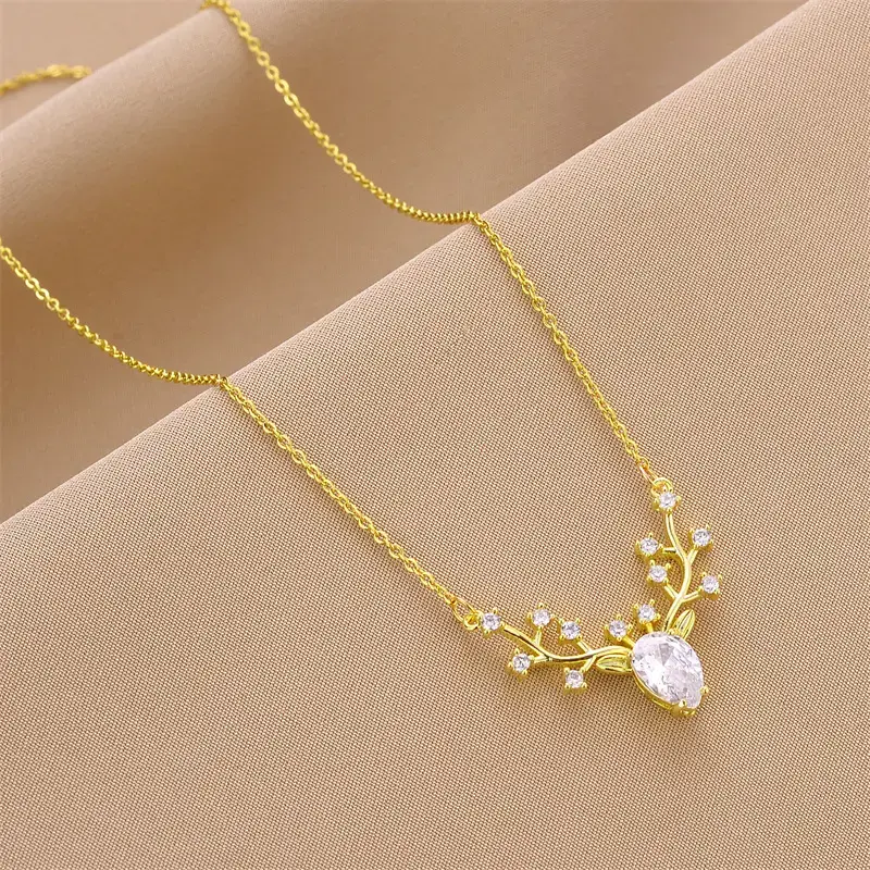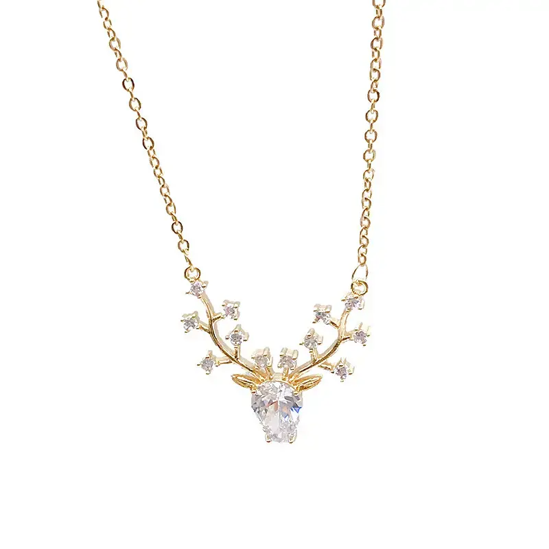 This Moonstone Deer Necklace is made of gold plated metal and features a modern design for a trendy look. It is the perfect accessory to add a touch of style to any outfit. The necklace is a trending piece that will make you stand out from the crowd. Add this piece to your collection and enjoy its timeless beauty.